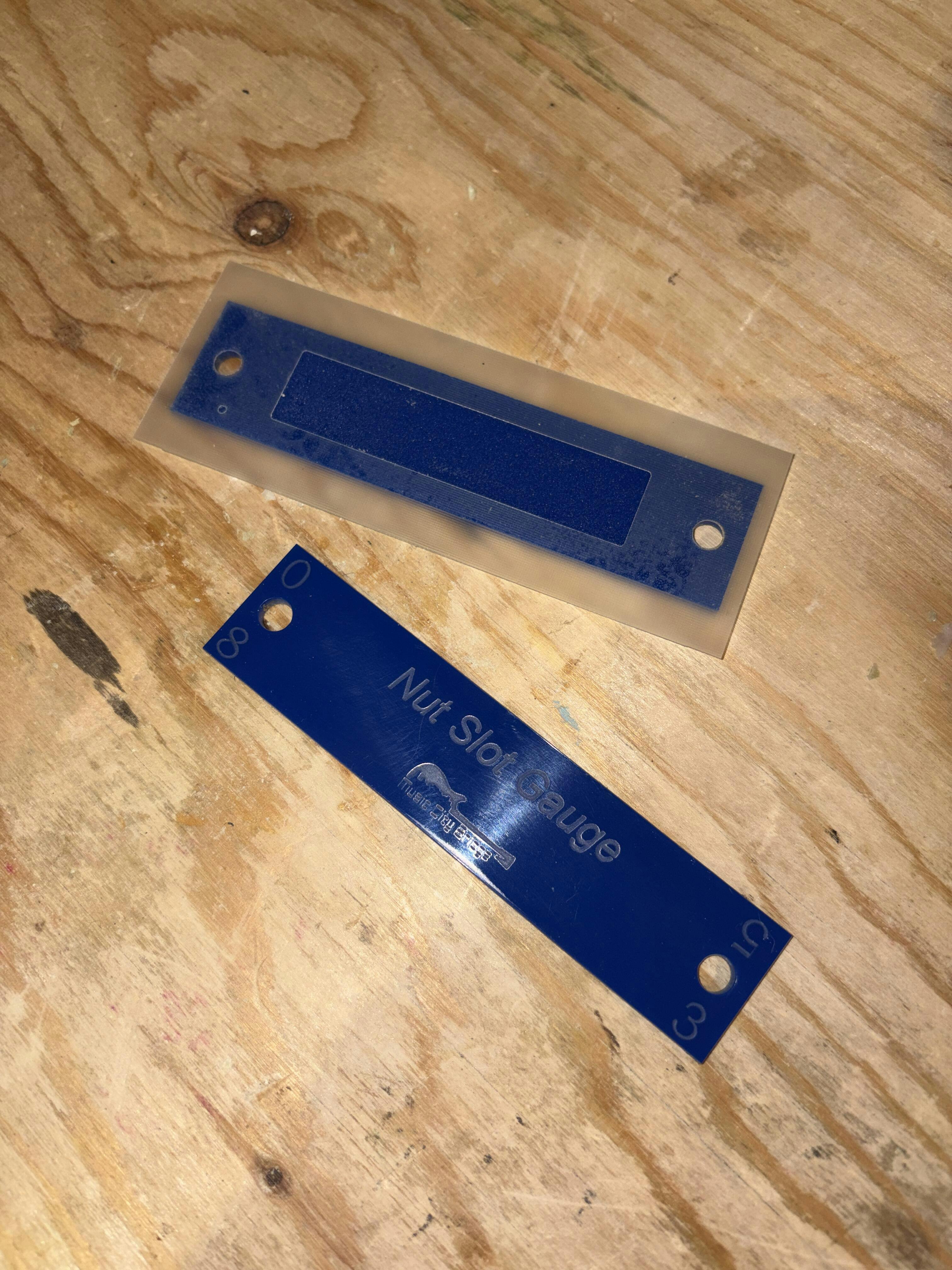 Introducing the Music City Bridge “Nut Slot Gauge.” This simple and effective tool ensures you achieve the lowest possible nut action while eliminating open-string buzz.